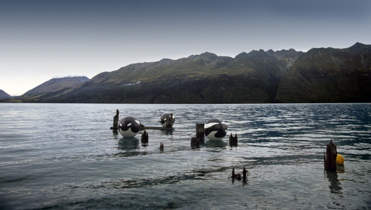 This image of inflatable Orca balls was shot on Lake Wakatipu on the South Island of New Zealand and references the 1977 horror film directed by Michael Anderson titled, Orca (Aka: Orca: The Killer Whale).